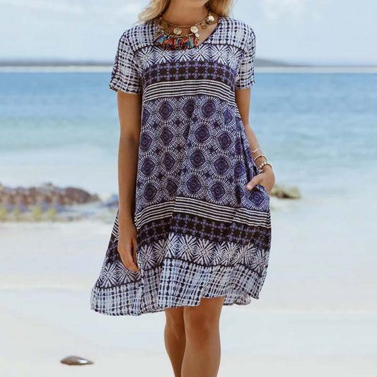 Lenaâą â Vintage avslappnad klĂ€nning med etniskt mönster