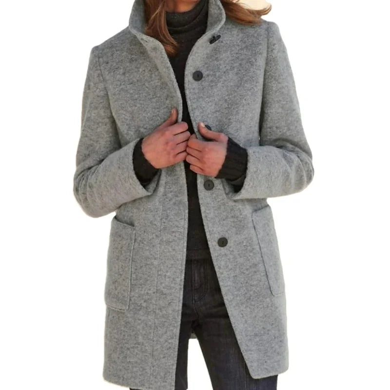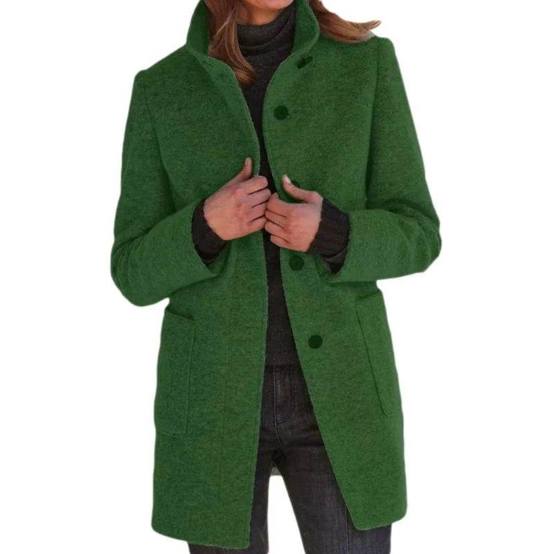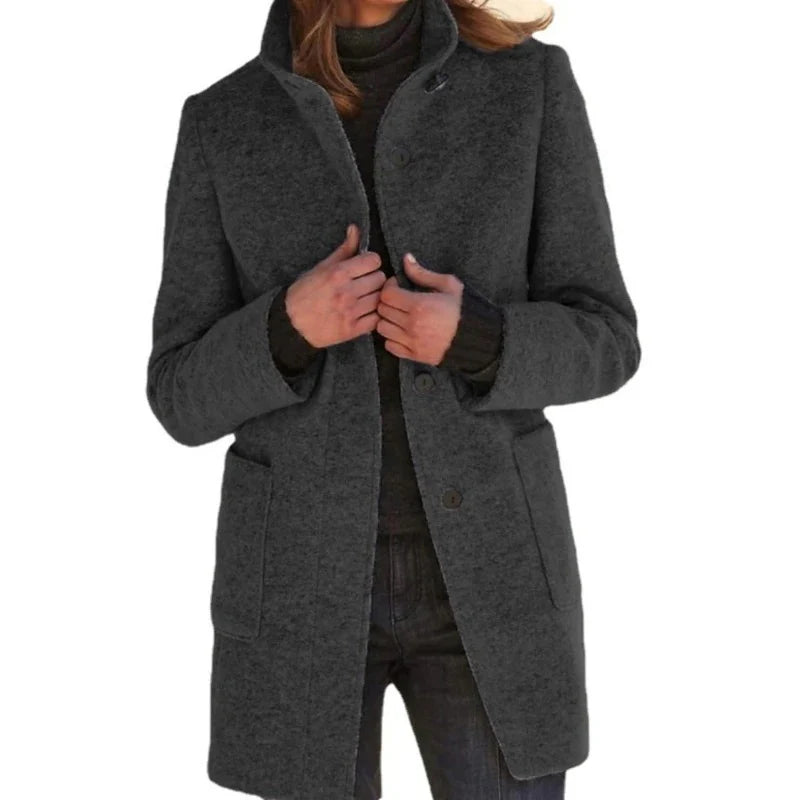 Letar du efter en kappa som inte bara håller dig varm, utan också ger ett välklätt intryck? Då är denna damkappa med hög krage precis det du söker – en tidlös klassiker som följer dig elegant genom kyliga dagar.