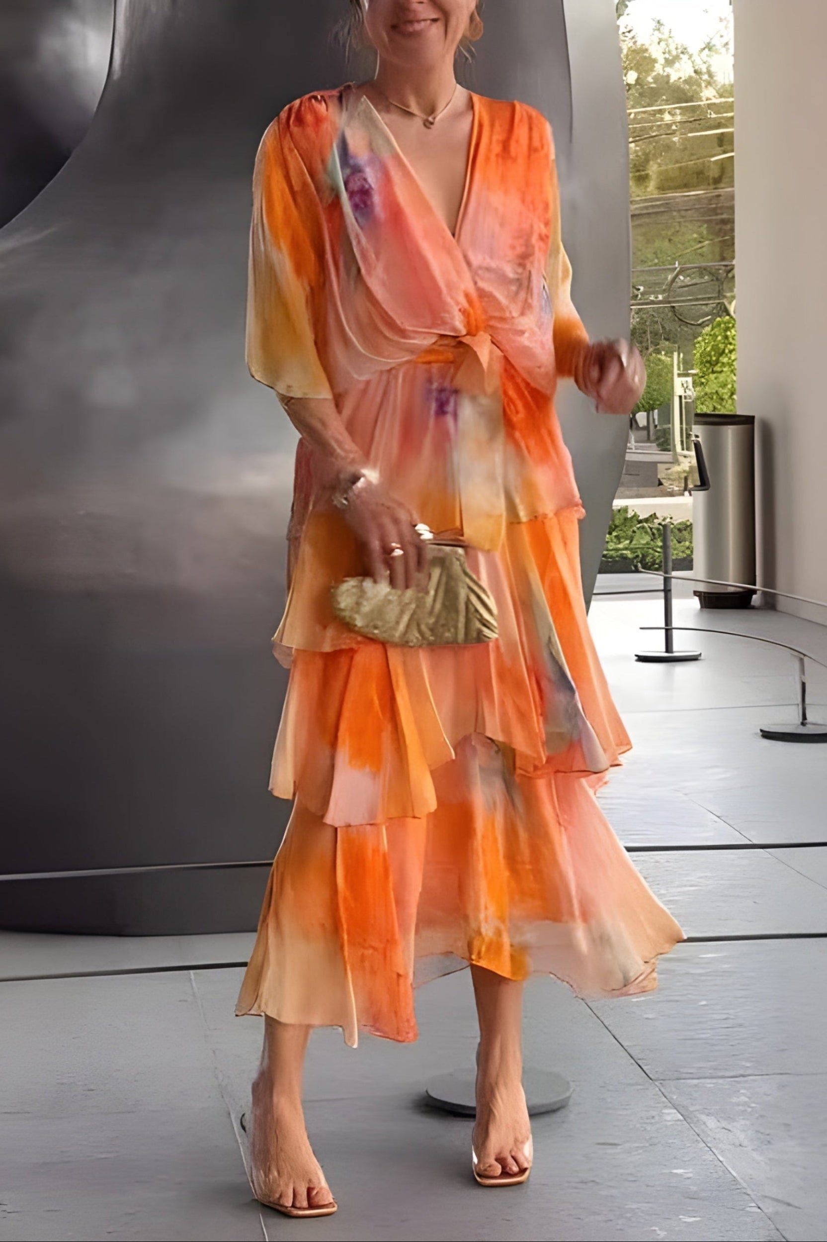 Den här klänningen kombinerar luftig komfort, tidlös stil och feminin styrka i varje rörelse. V-ringningen framhäver ditt ansikte och den mjuka passformen följer kroppen med lätthet. Perfekt för varma dagar när du vill känna dig både avslappnad och vacker.